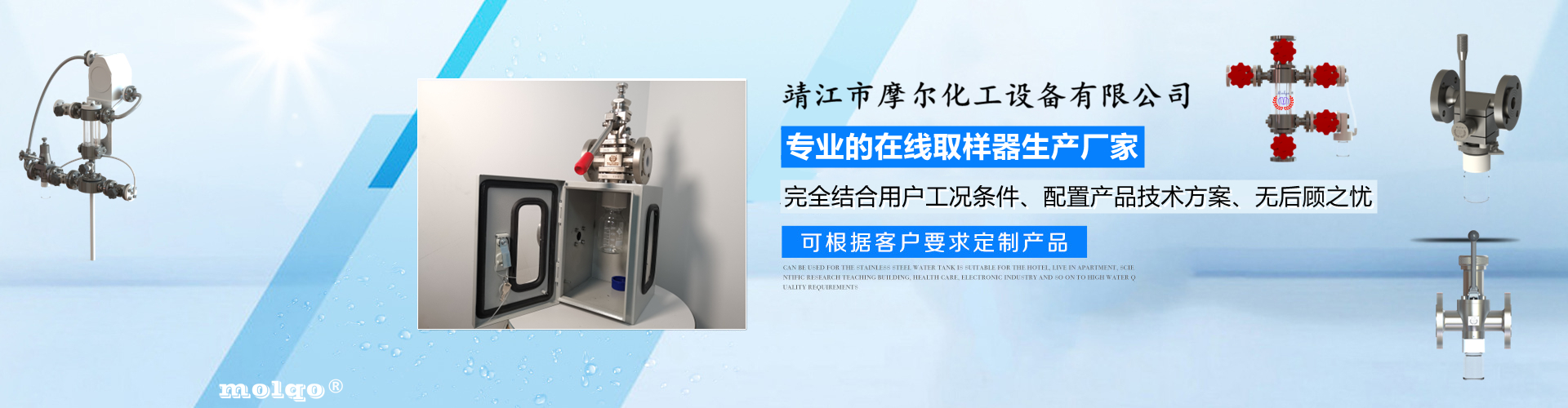 靖江市摩爾化工設備有限公司位于蘇中明珠——江蘇省靖江市城南工業園區東進路北側天元艾爾瑞內,另有生產基地位于靖江市經濟技術開發區新號路1號鼎電科技園內。我公司由數名長期從事化工生產、氟塑襯里模具開發以及機械自控設備的專業人員共同合作成立,致力于提供客戶最優的高效在線取樣、反應及精餾分離設備,為客戶提供合理的設備選型方案,以幫助客戶提高綜合生產效率以及改善生產現場環境為目標。 本公司主要制造及銷售的產品有:釜用在線取樣裝置,管道取樣閥,釜用清洗噴淋裝置、搪玻璃設備、GMP專用搪玻璃設備、氟塑襯里設備、攪拌器、釜用機械密封、氣動閥門及搪玻璃管道、襯氟閥門管道、非標不銹鋼容器,精餾塔塔器、片式冷凝器及PTFE密封件、鋯、鈦、鉭、鎳等加工件制品。我司是一家集研發銷售、設計咨詢服務于一體的專業···| 林州市 | 巨野县 | 宿迁市 | 双流县 | 若尔盖县 | 平度市 |